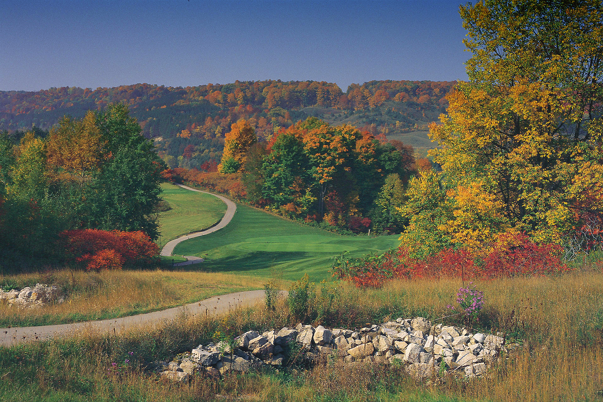 Our 18-hole championship golf course, designed by Canadian course architect Thomas McBroom, boasts some of the most breathtaking vistas in southern Ontario. Emerald-bent grass fairways were skillfully incorporated into the natural landscape, leaving much of the terrain untouched and framed by rolling fescue-covered hills. The unrivaled natural beauty and challenging design will test all aspects of your game, on a course where pars are memorable and the experience will keep you coming back time and again. Use of shared power cart is included. HST is extra.